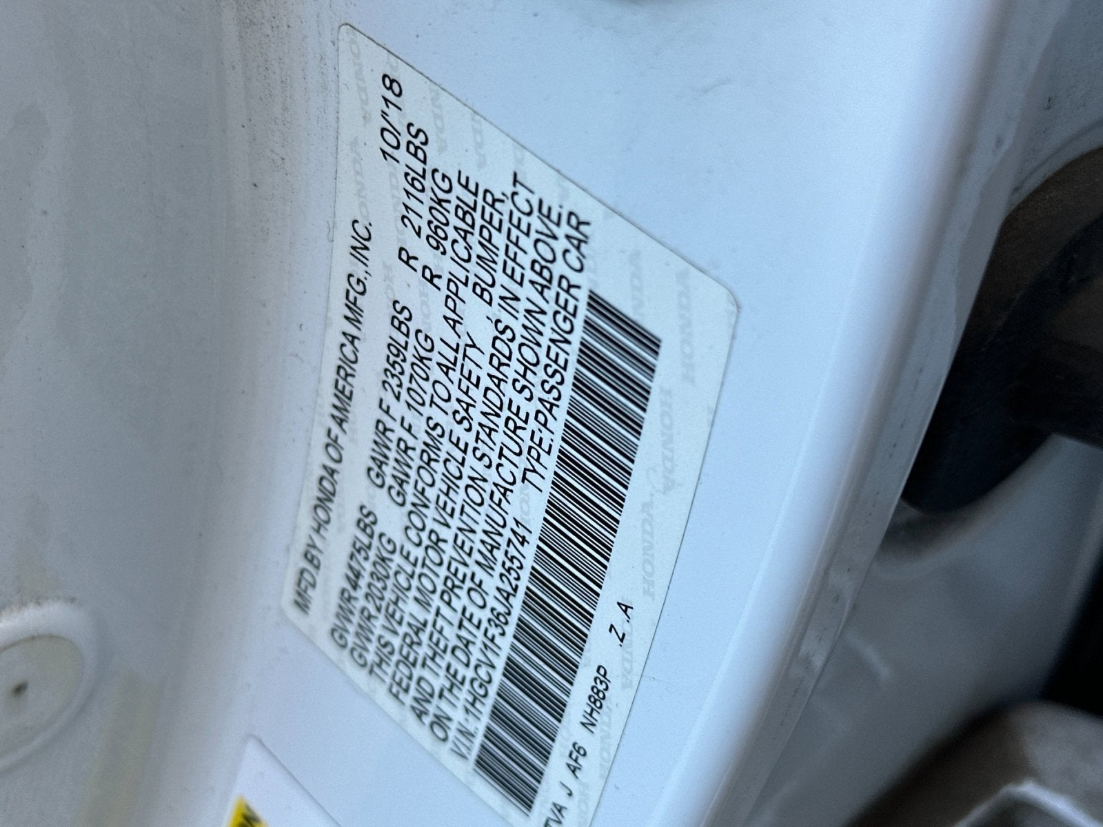 1HGCV1F36JA255741